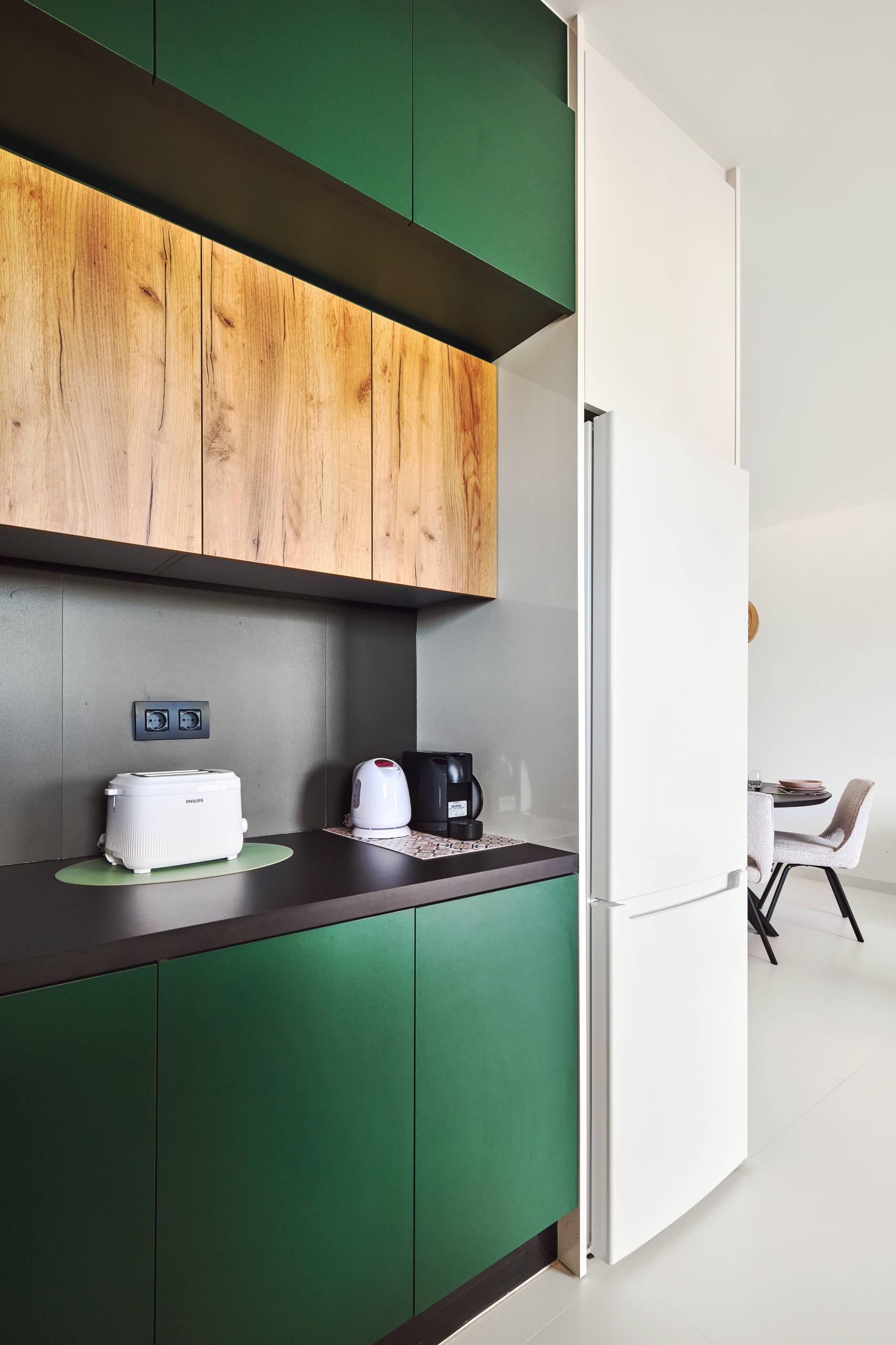 The American kitchen is fully equipped with state-of-the-art appliances, including a fridge, freezer, washing machine, oven, microwave, coffee maker, toaster, kettle, juicer, and a wide variety of kitchenware. Additionally, it has air conditioning and central heating to maintain a perfect temperature at any time of the year.