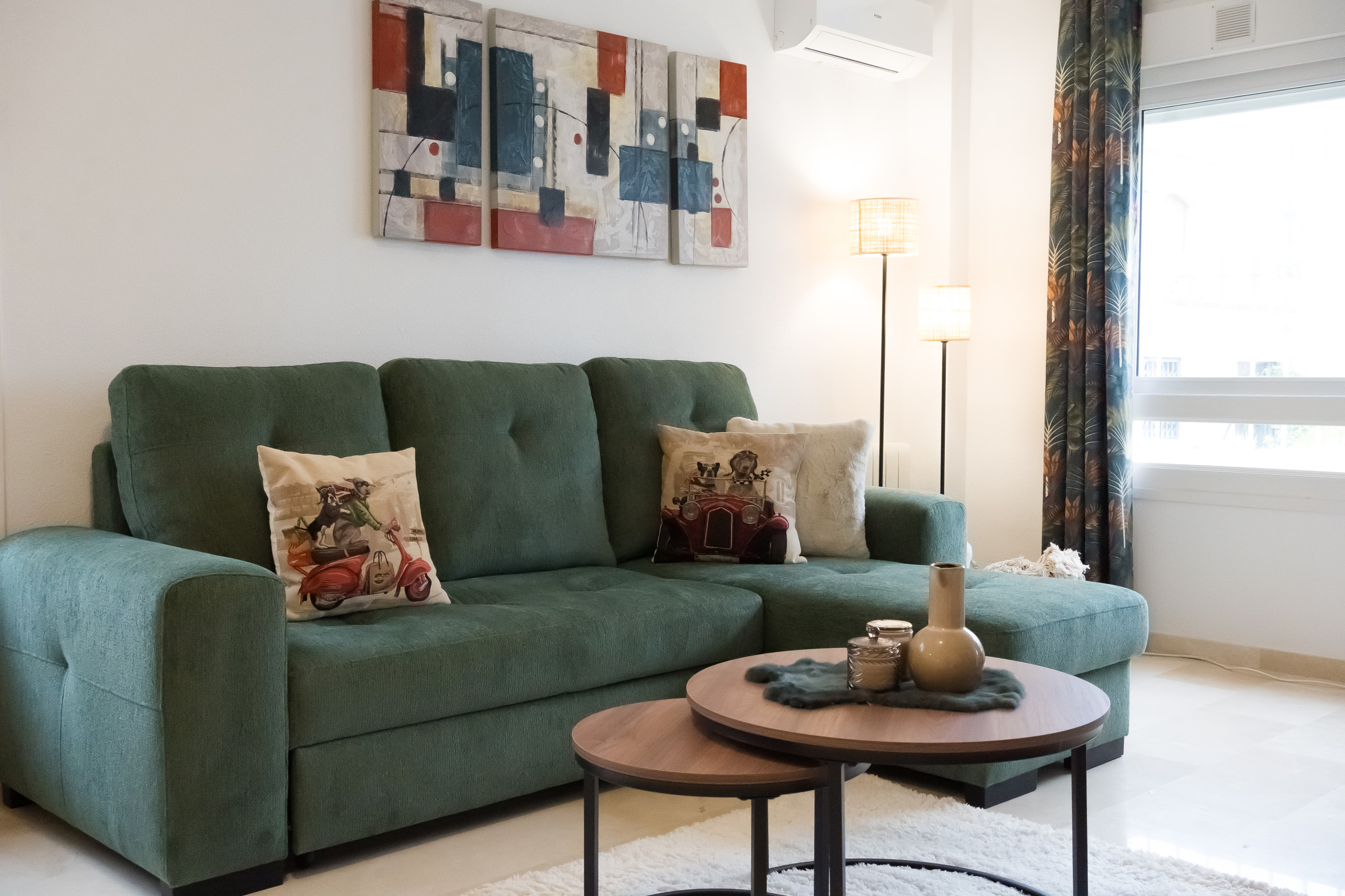salón/comedor con aire acondicionado, televisión y sofá cama