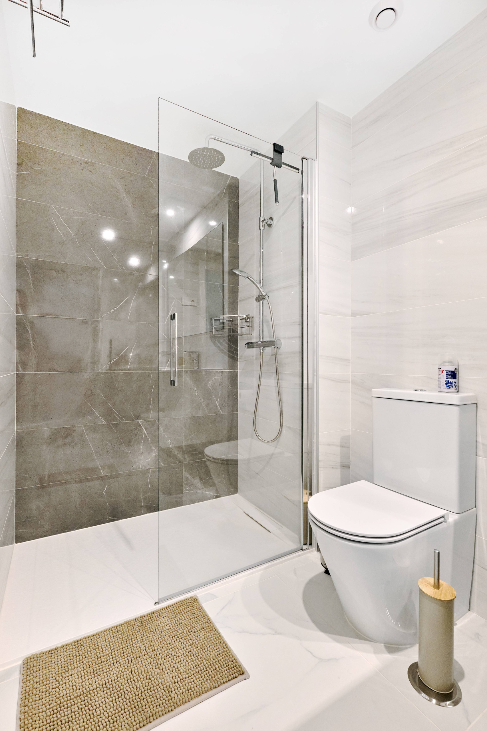 - cuarto de baño en suite con lavabo, ducha y cisterna de inodoro