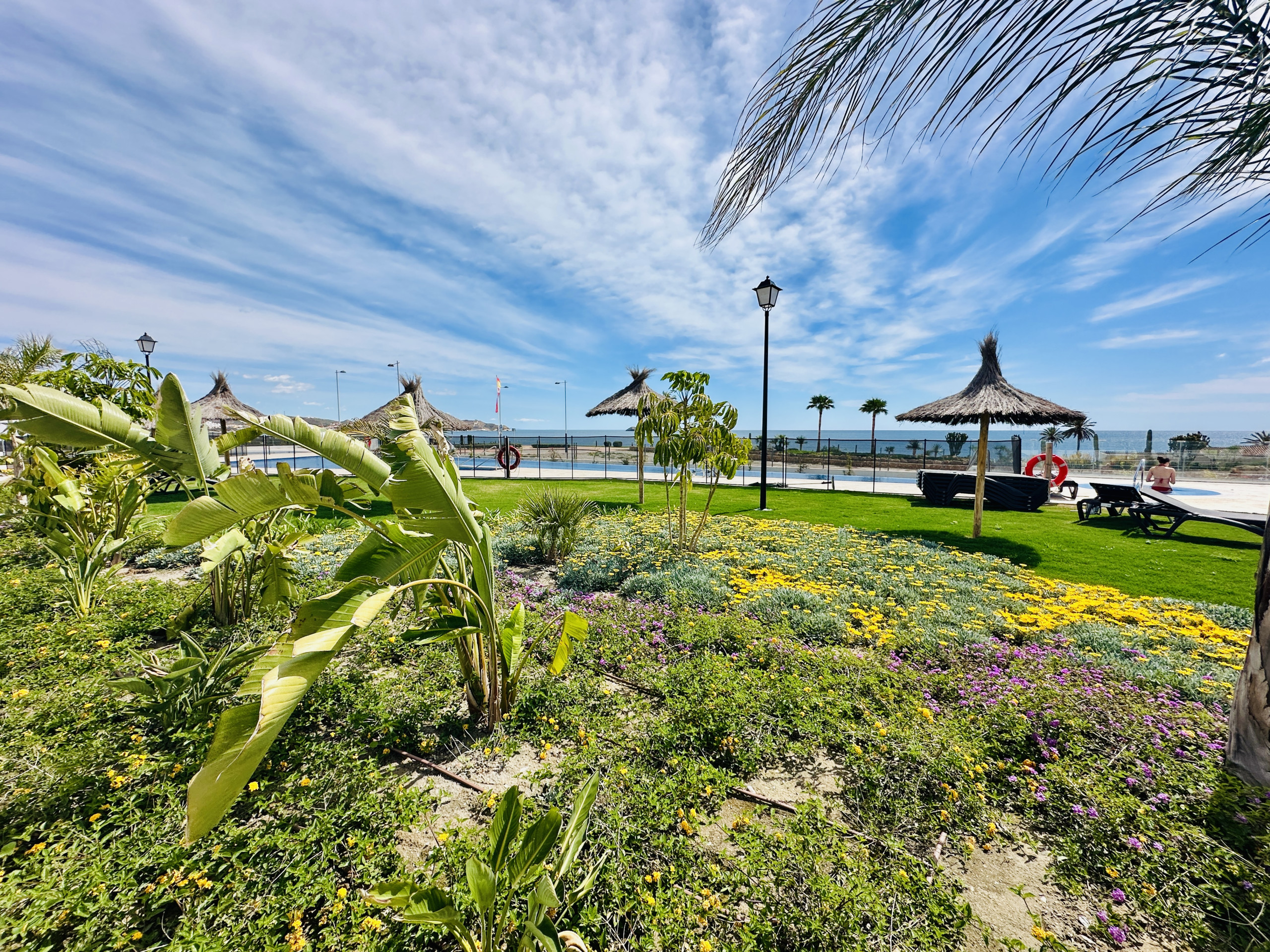 El apartamento de vacaciones tiene 2 dormitorios y 1 cuarto de baño. El alojamiento ofrece un bonito jardín privado con gravilla y árboles, un jardín comunitario con césped y árboles y unas maravillosas vistas a la piscina. La cercanía de la playa, sitios para salir, actividades deportivas, zonas de entretenimiento y lugares para ir de compras hace de este apartamento un alojamiento apropiado para pasar sus vacaciones en España con familia o amigos.