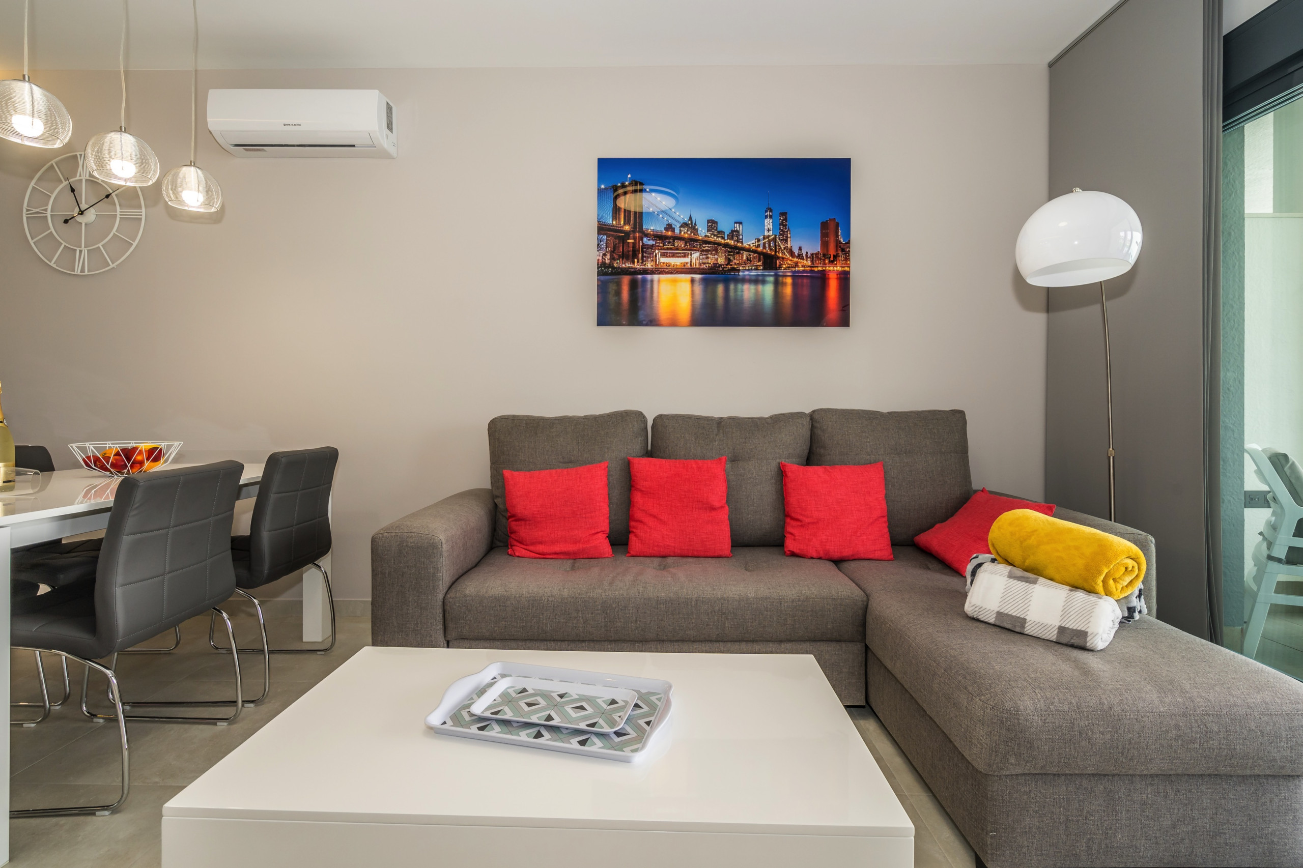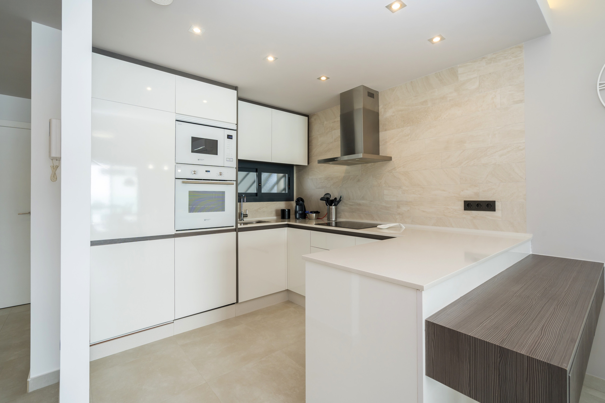 L\'appartement dispose d\'une cuisine américaine entièrement équipée, avec des appareils électroménagers de dernière génération tels que four, micro-ondes, lave-vaisselle et lave-linge. Il dispose également de la climatisation dans toutes les pièces, d\'un chauffage électrique et du WiFi, pour que vous puissiez profiter de tous les conforts.