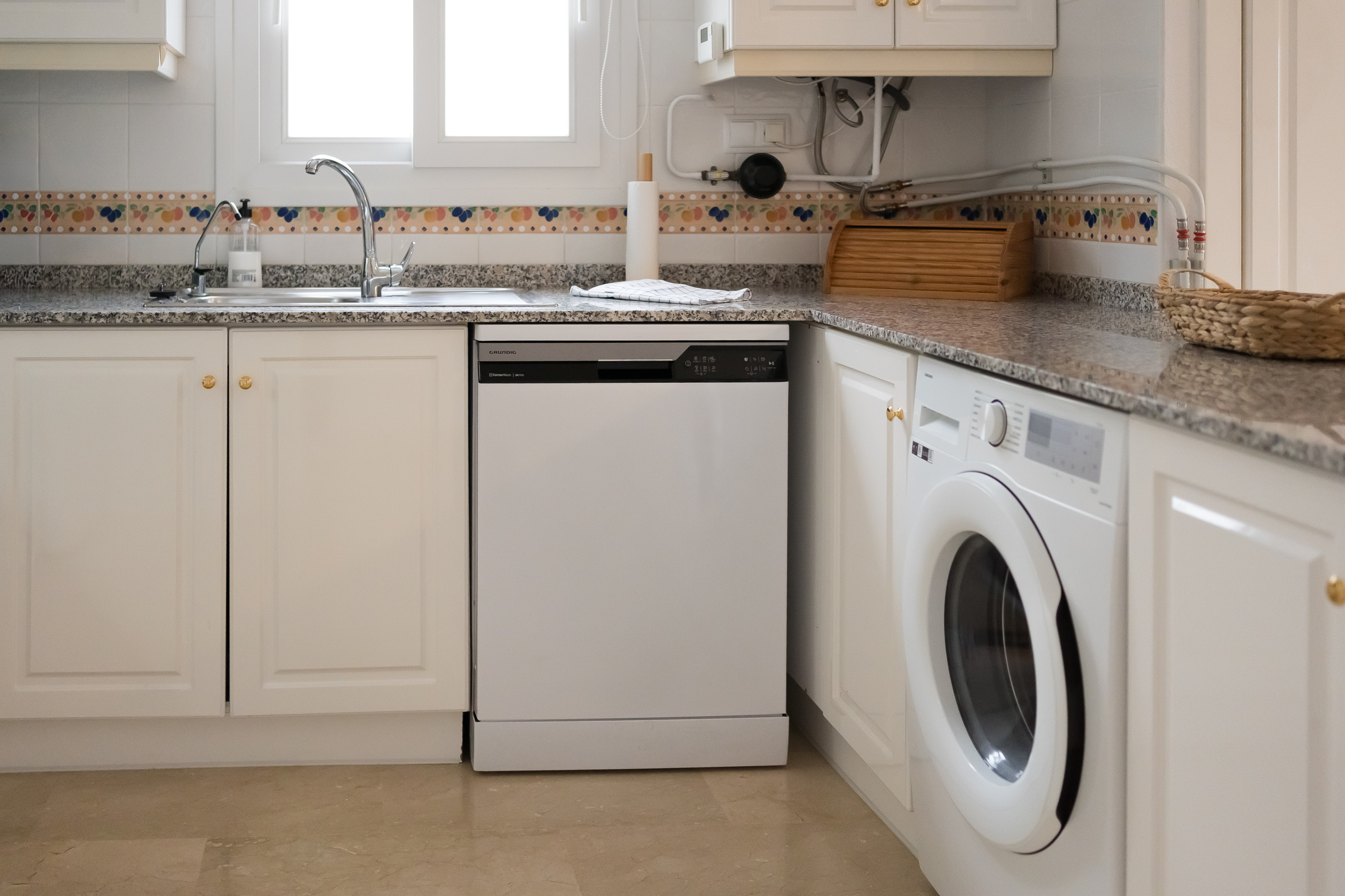 La cuisine américaine est entièrement équipée d'appareils électroménagers modernes tels que lave-linge, lave-vaisselle, four, micro-ondes, cafetière et une large variété d'ustensiles de cuisine. De plus, elle dispose de la climatisation dans le salon, du chauffage central, du WiFi et de la télévision avec de multiples chaînes internationales.