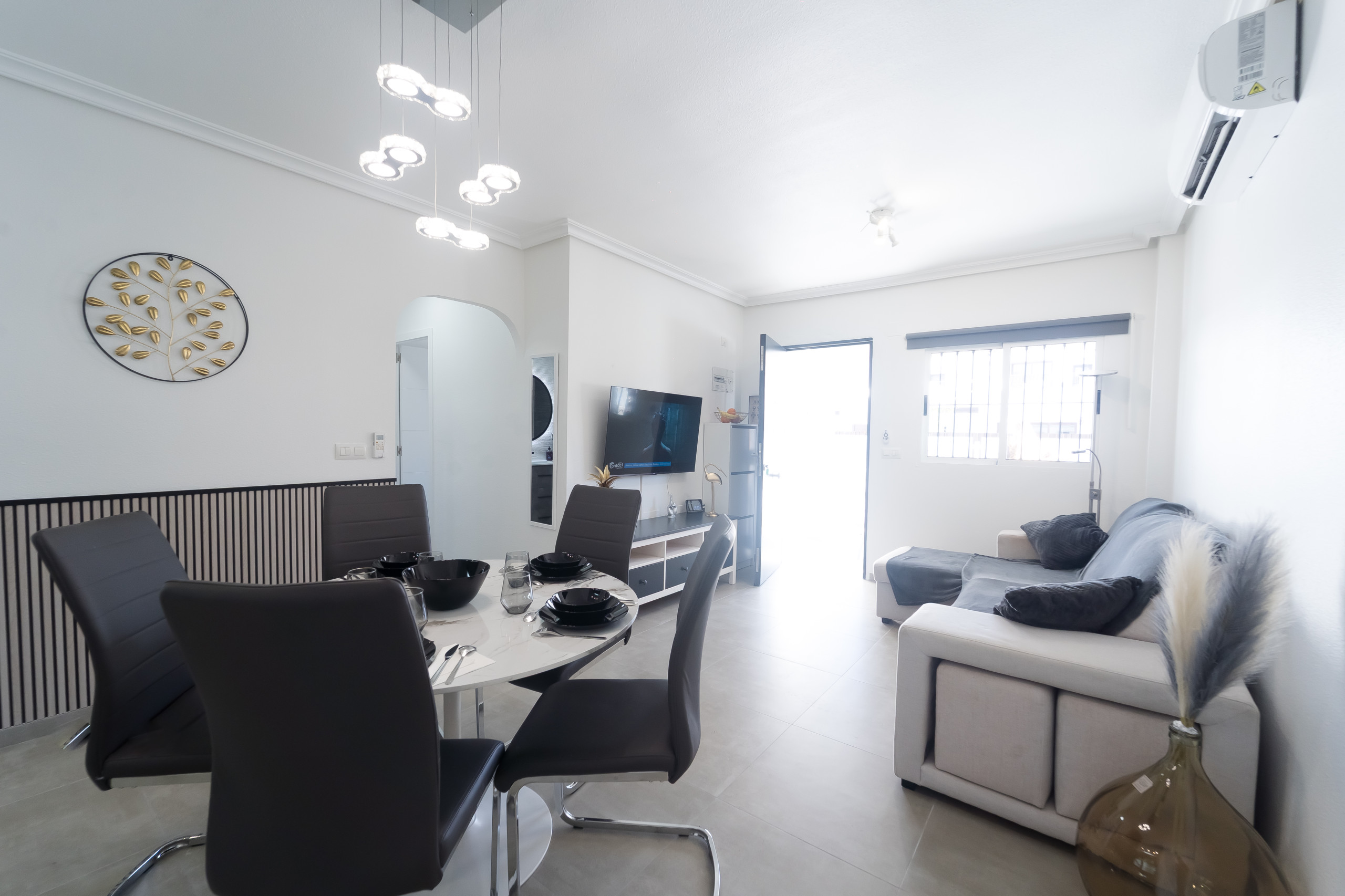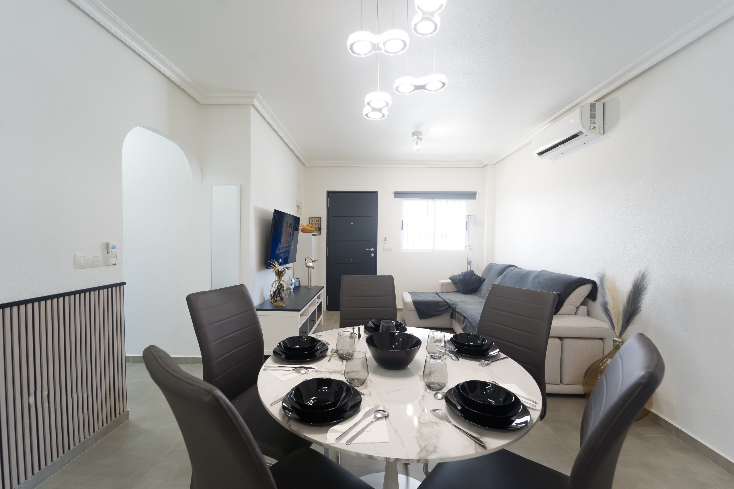 - salon/salle à manger avec climatisation, télévision et canapé-lit