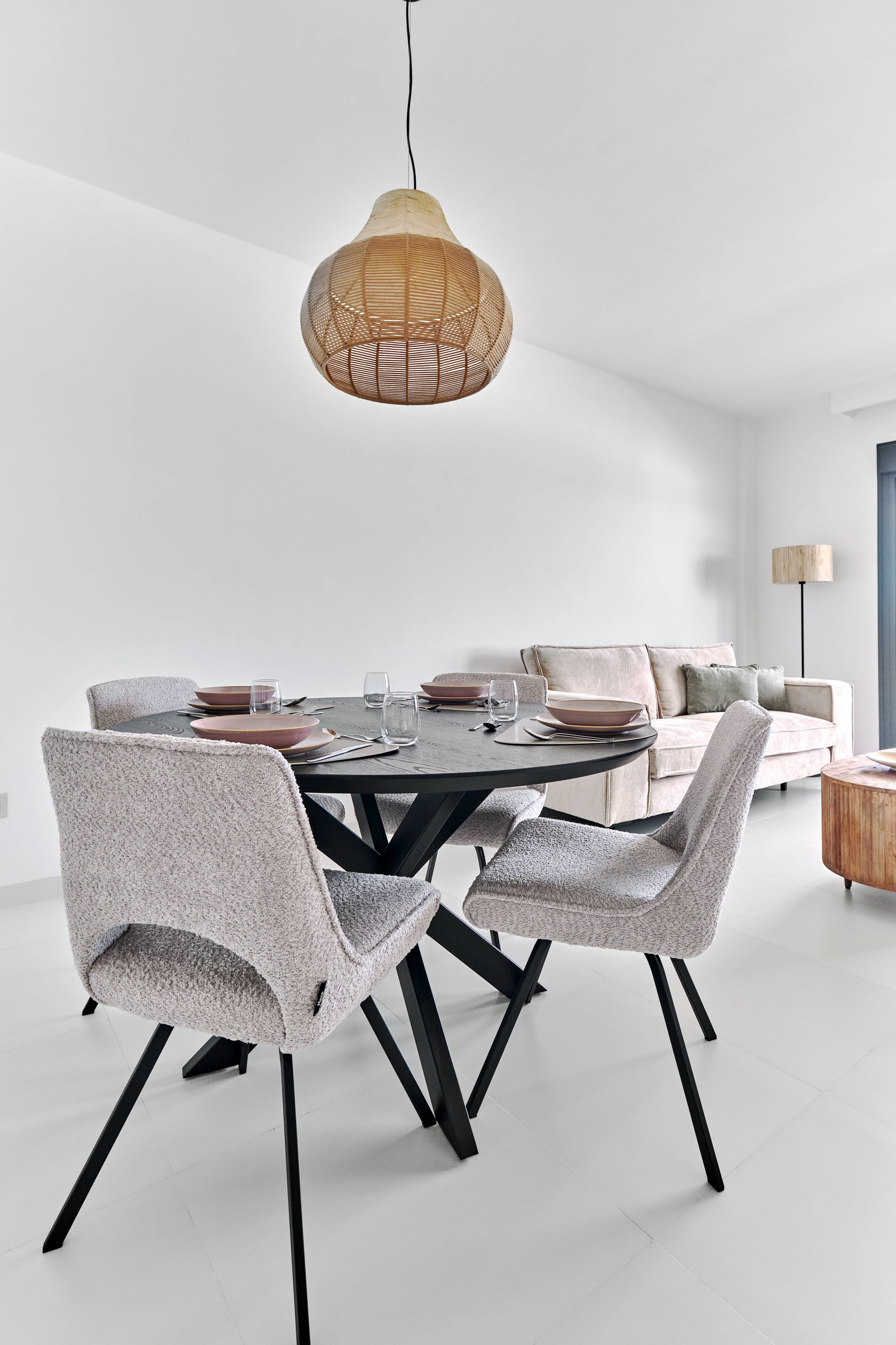 La cuisine américaine est entièrement équipée d'électroménagers de dernière génération, comprenant un réfrigérateur, un congélateur, un lave-linge, un four, un micro-ondes, une cafetière, un grille-pain, une bouilloire, un presse-agrumes et une large variété d'ustensiles de cuisine. De plus, elle dispose de la climatisation et du chauffage central pour maintenir une température parfaite à toute époque de l'année.